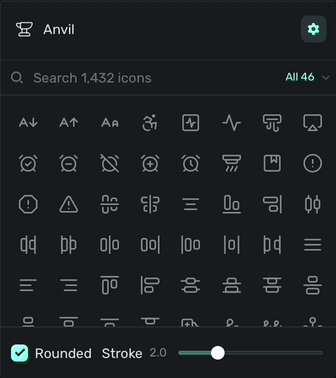 - Icon: Superwall has over 1,000 searchable icons to available, along with the ability to edit their weight and color. You can browse them by category by clicking on the right hand side: