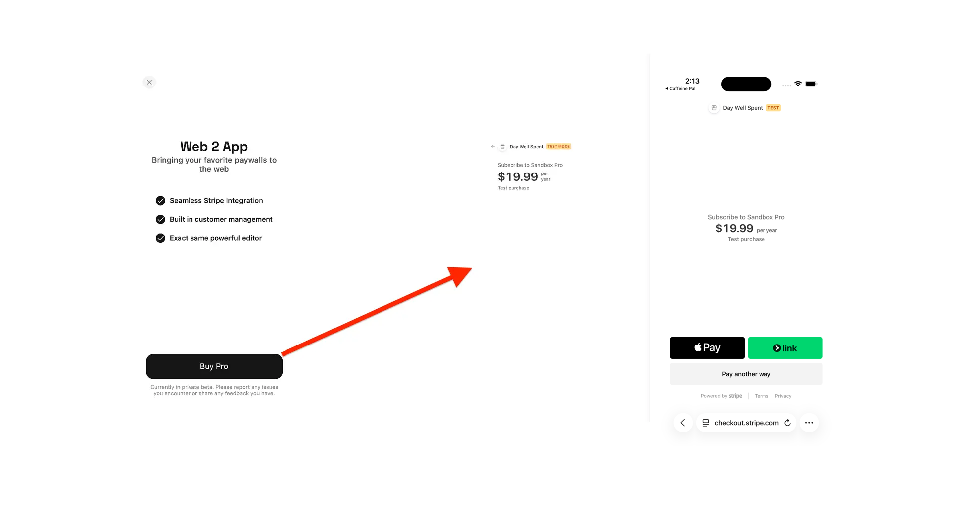 Once the purchase goes through successfully, they'll be taken to a page where Superwall prompts them to: